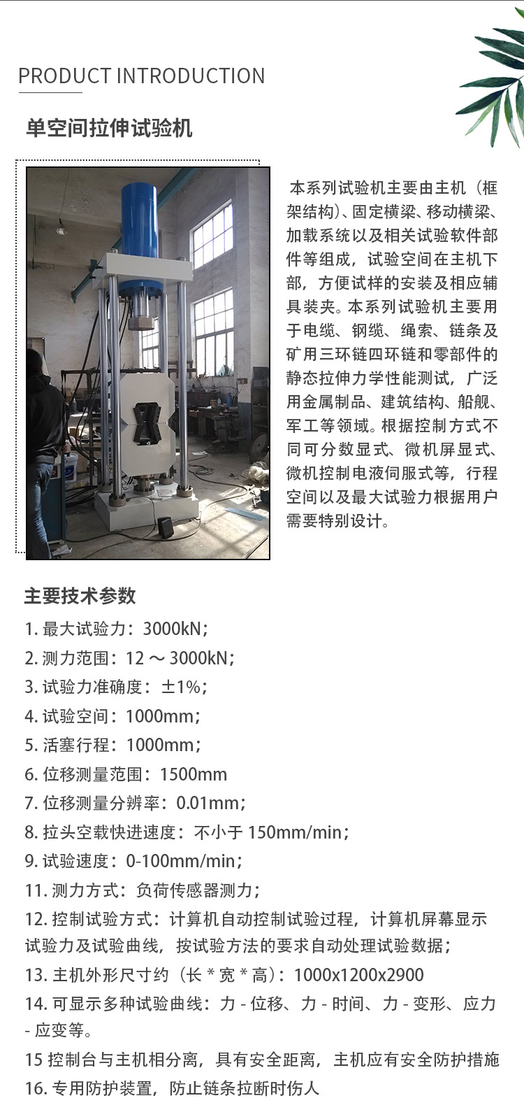 帶袢鈦板循環拉伸疲勞試驗機技術指標